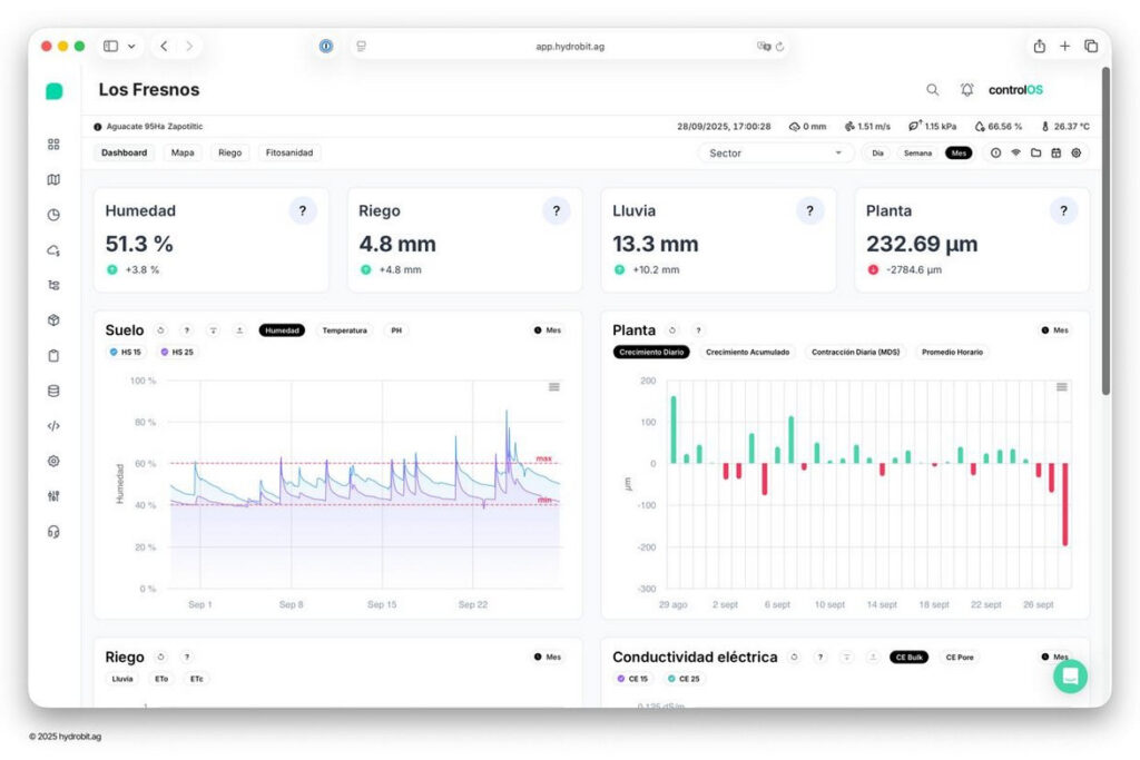 Поверх субстрату — цифрова платформа Hydrobit, яка дозволяє контролювати кожну змінну: полив, живлення, здоров’я рослин — все з телефону або комп’ютера в режимі реального часу.